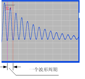下圖就是對某一條故障電纜進行沖閃測試得到的波形,沖閃波形上沒有絕對的電纜始端,從波形的宏觀周期上面找到一個完整的周期,測量一個周期的距離就是電纜的故障長度D。