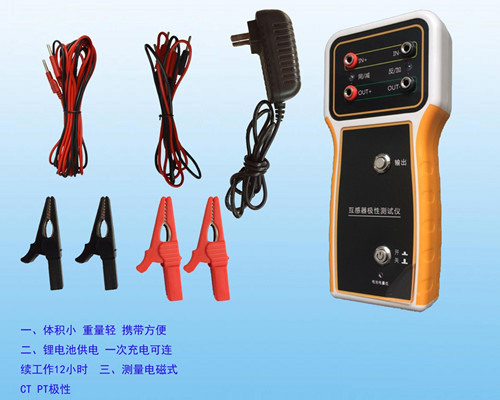 傳統(tǒng)互感器極性測試方法使用干電池的正,負(fù)極分別接在電流互感器的一次側(cè)的極性端和非極性端并做搭、拉試驗(yàn),同時(shí)在電流互感器的二次側(cè)接電流表或者萬用表的mA檔觀察指針的偏轉(zhuǎn)方向?,F(xiàn)場需要一個(gè)人觀察指針偏轉(zhuǎn),一個(gè)人搭拉試驗(yàn),一組CT三相均有保護(hù)、計(jì)量、測量三組線圈,試驗(yàn)人員需要多次搭拉試驗(yàn),相當(dāng)繁瑣,并且當(dāng)電流互感器變比較大時(shí),二次感應(yīng)電流很小,幾乎無法使指針偏轉(zhuǎn)。